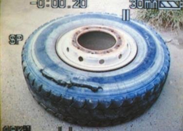 图为爆裂的轮胎。(来自视频截图)
